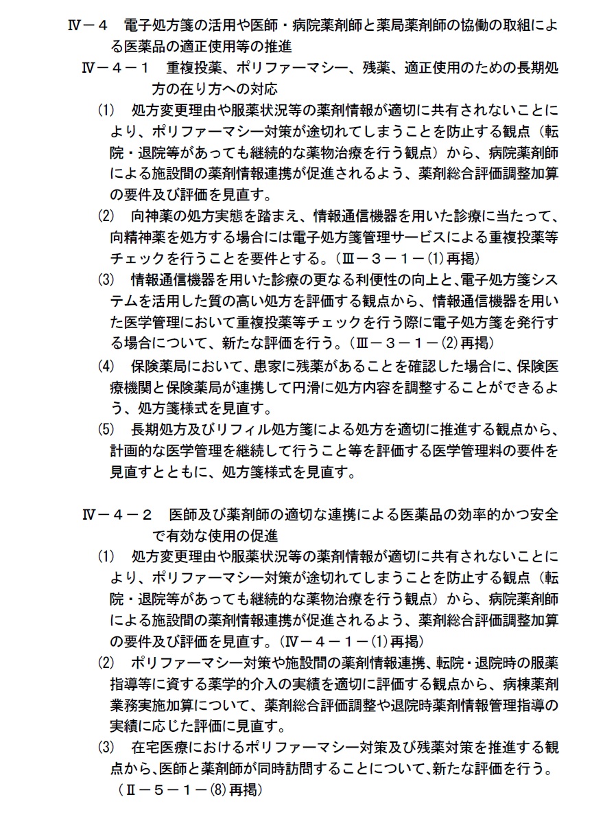 現時点では、病院薬剤師び新たな評価については薬剤総合評価調整加算の要件及び評価の見直し以外には確認できませんでした。