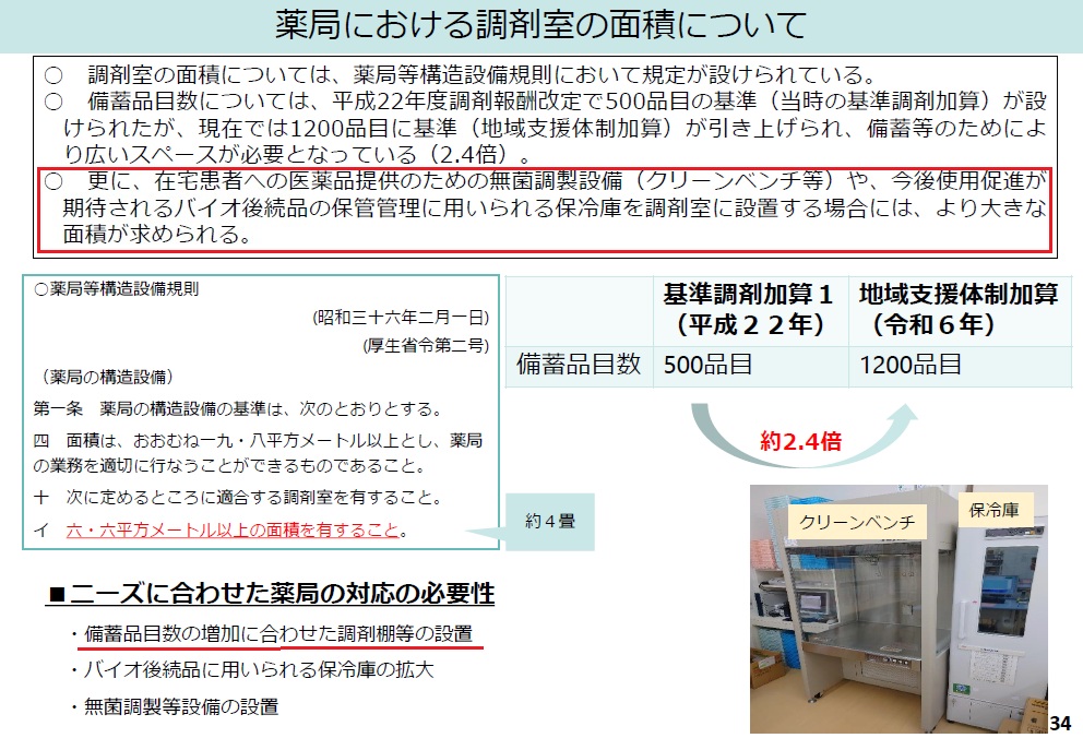 調剤室の広さが本当に重要なら、基本料とか地域支援の要件にするより、新規開設にその面積を要件にすべきよね。