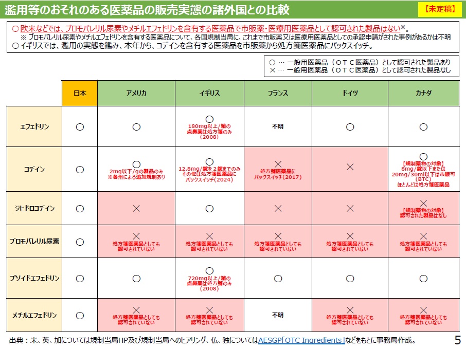 結構市販薬に入れちゃダメとか、昔は市販薬に入れてよかったんだけど、やっぱりいろんな問題が生じたからもう処方箋がなきゃダめにしたとか、あるいは 処方箋があってもダメとか結構厳しくしてるんですよ。
